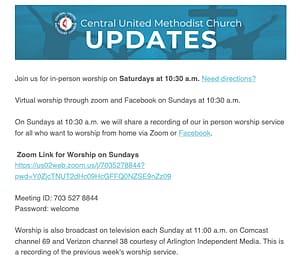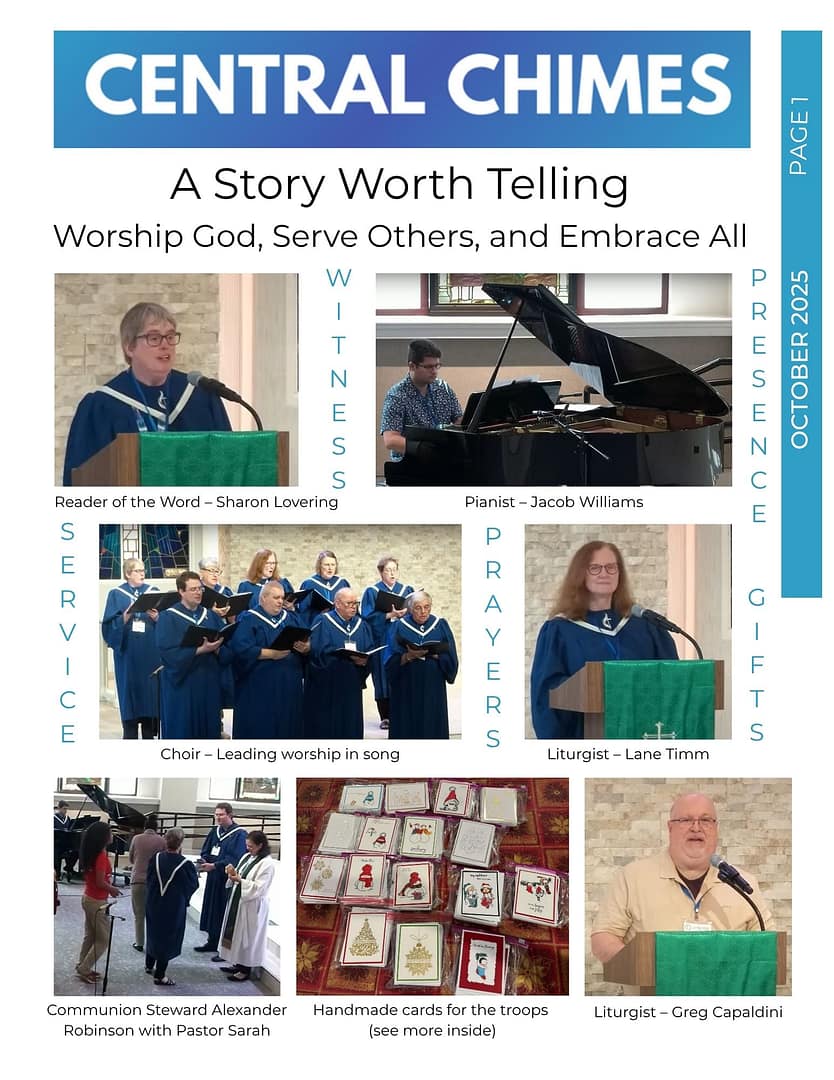 The Central Chimes is our newsletter sent every week and another for the month to members and friends of CUMC who would like to stay up to date on the life of our church.